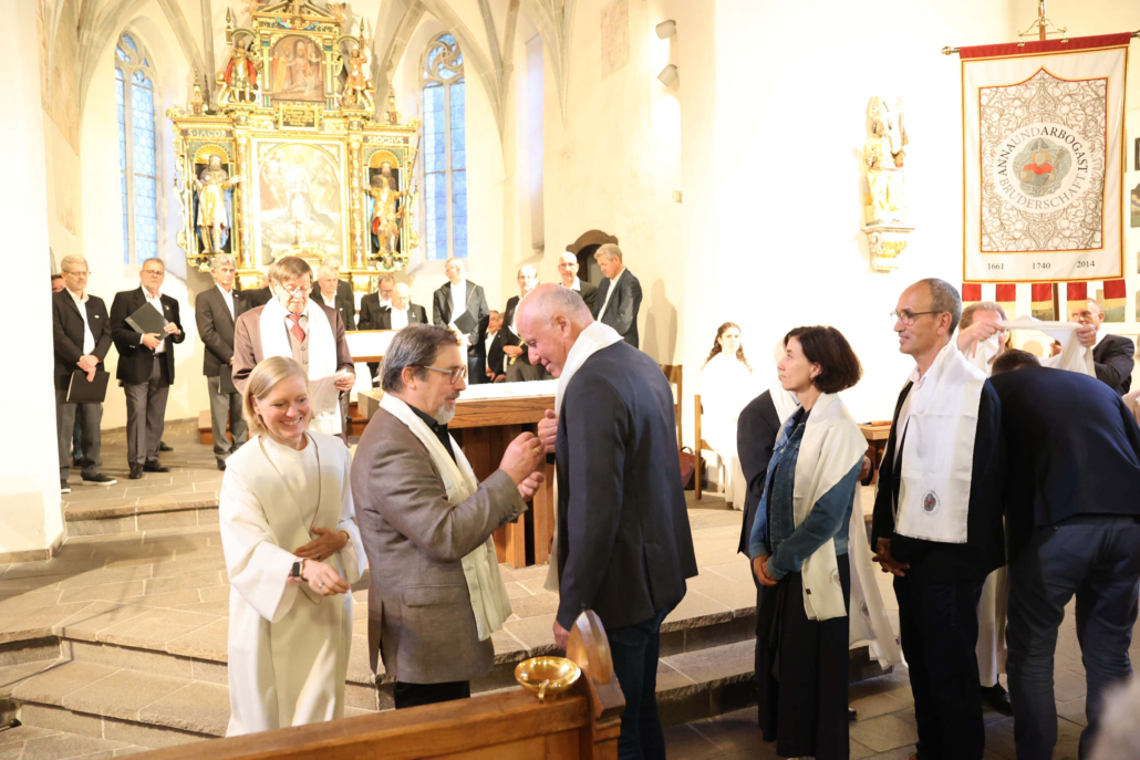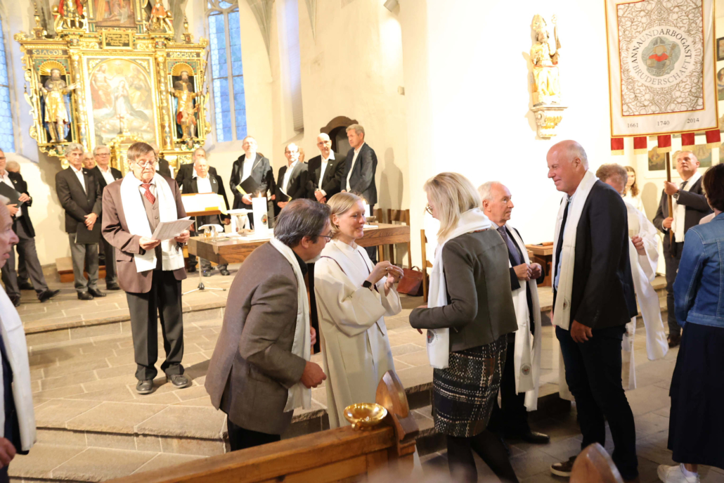 Im Rahmen des Festgottesdienstes am 28. September, den Dompfarrer MMag. Fabian Jochum, Dekan Pfarrer DI Mag. Rainer Büchel und Pastoralassistentin Heidi Liegel zelebrierten, wurden 13 Frauen und Männer neu in die Bruderschaften St. Anna und St. Arbogast aufgenommen und der verstorbenen sechs Mitglieder –Josef Fend, Hans Giesinger, Pfarrer Richard Gohm, Lorenz Hug, Maria Lampert und Friederike Oberhauser – seit November 2022 gedacht. Musikalisch umrahmt wurde die Messe Vom Männerchor Nenzing unter der Leitung von Patrick Honeck und von einem Ensemble des Konservatoriums unter der Leitung von Hannah Kraft.