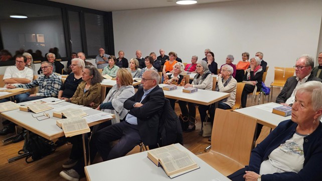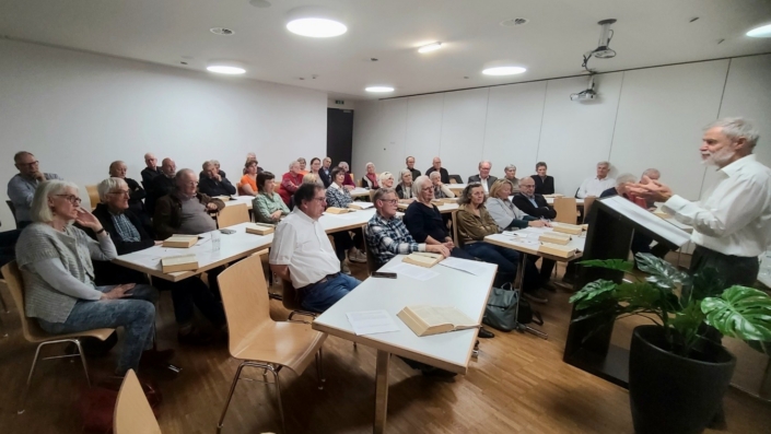 Er schloss mit der Frage, warum heute so wenige Menschen dem wertvollsten Buch nicht mehr Zeit widmen. Ob dies beim anschließenden Austausch und einem Gläschen Bruderschaftswein auch ein Thema war?