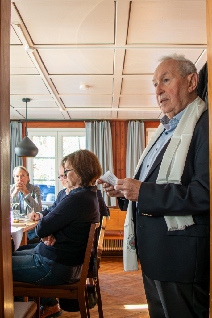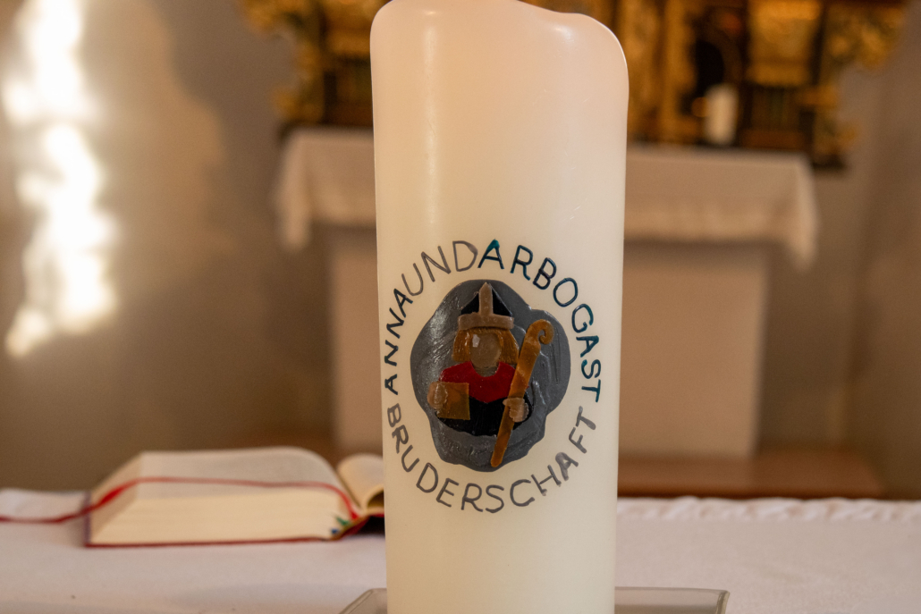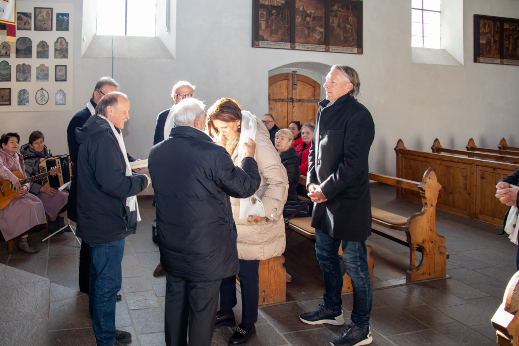 Unmittelbar zuvor wurden Angelika Rein, Ludwig Muxel und Mario Weger als neue Mitglieder in der nahen Bruderschaftskirche im Beisein von Vorstand Pfr. Rainer Büchel, Brudermeister Günter, Aktuar Armin, Fähnrich Bernhard und Mitgliedern des Vorstands feierlich in die Gemeinschaft der Brüder und Schwestern aufgenommen. Dass damit auch der Kreis der Mitglieder im Orbis Amicorum verstärkt wurde, freut Bruder Franz besonders. Ihm gebührt Dank für die engagierte Betreuung des Freundeskreises und die Organisation des stimmigen Anlasses.