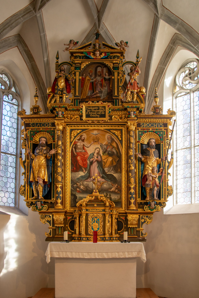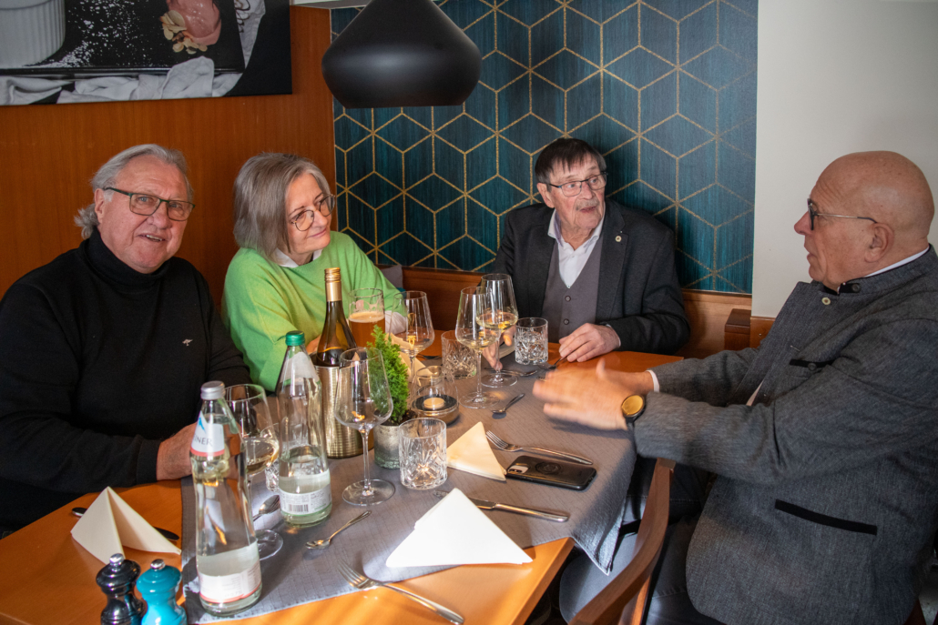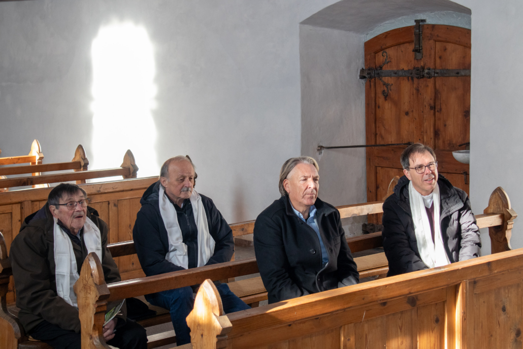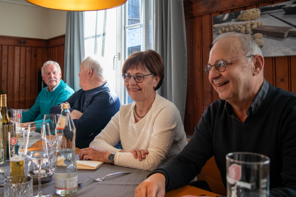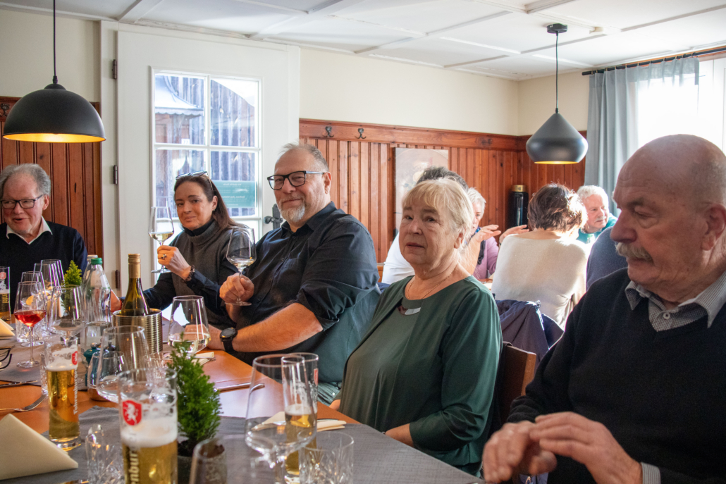 Wie jedes Jahr luden unsere Brüder Hermann Metzler und Franz Hassler für den Vorstand die Mitglieder des Freundeskreises der Bruderschaft, diesmal samt der rührigen Kobel-Runde, zu einem Dankes-Fest ein. Im Gasthaus Schützen in St. Arbogast ließen sich die Anwesenden bei herzhaften Kässpätzle mit Apfelmus und Kartoffelsalat in bester Tradition verwöhnen. Gute Stimmung und das Frauen-Duo Bergziegen aus dem Bregenzerwald sorgten mit heimeliger Musik und launigen Witzen, für gelungene Unterhaltung.